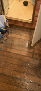 マンションの配管の勾配が悪く、水を使用されていないのに部屋に汚水が逆流し水浸しの現場です。途中に点検口や掃除口無し、難作業でしたが管内カメラを複数使い、位置を特定して枝管の閉塞物やメイン管の清掃を行いました。常に排水管の中が満水状態で勾配が取れていません。排水管の工事を含め、有るべき所に点検口や排水桝を設ける等の処置が必要です。