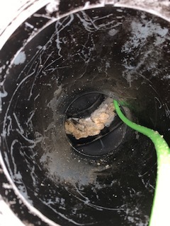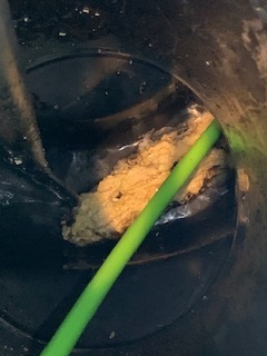 排水管高圧洗浄作業です。以前から流れが悪く御相談頂きました。大きな油脂の塊を取り出しましたが、布系の異物が管内に引っ掛かり、余計に排水不良を起こしていたようです。