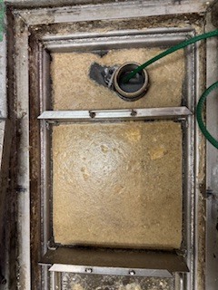 先日の調査・応急処置対応だけ済ませていた、工場の排水管スケール・詰まり除去を出入りが少ない時間帯を選んで作業させて頂き完了致しました。高圧洗浄だけではビクともしないカチコチの付着物ですが、通常使用可能な状態に綺麗に復旧致しました。