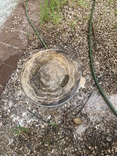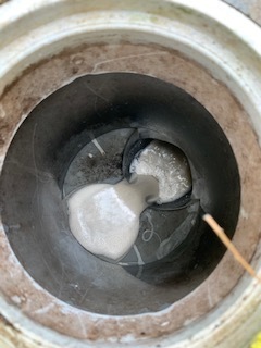 雨水と外部散水栓用の排水管の流れが悪く、お家の方御自身で棒を突っ込んでみたりと色々工夫されていたそうです。大雨で流れずお困りでした。排水管は土管でカメラ調査をさせて頂いた所、大きな破損はないが木の根が大量、棒も木の根に絡まり複数の土管のズレた部分に完全にはまっている状態でした。単なる高圧洗浄やワイヤー作業では不可能な現場で破損しやすい土管でしたので、別の工法にて丁寧に取り除きました。お家の方も棒は1本だと思い込んでおられてびっくりされていましたが、大掛かりな掘り起こしをする必要なく解決して喜んで頂けました。破損が今後広がったり木の根の成長具合で入替えも視野に入れる必要は御座いますが、これで通常使用出来ます。少量しか水が出てこなかった土管から綺麗に排水されるのを確認して完了です。