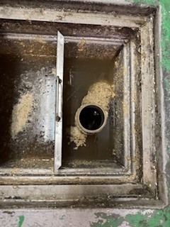 排水の流れが悪い御相談で出動しました。通常の洗浄作業で終わるかなと思っていましたが、油脂の塊や石鹸カスで床下のマンホールが押し上げられていて床下には以前から逆流していた跡が確認出来ました。排水管内も汚れが酷かったですが、高圧洗浄で綺麗になりました。勾配不良もあり停滞しやすいようです。定期的な洗浄と点検が大事ですね。
