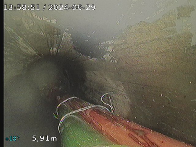 数カ月前にカメラ調査をさせて頂いた物件で、応急の通管で詰まり抜きだけ行っていました。今回は異物とモルタル除去作業。土管の半分以上埋もれているモルタル除去で、条件が悪く難易度が高い作業でしたが無事に作業完了致しました。異物はVHSのビデオテープでした。