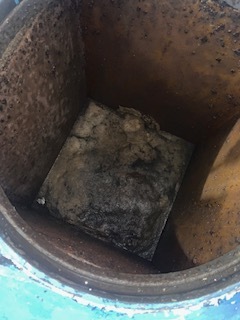原因は油脂や石鹸カスの塊です。高圧ジェット洗浄でとても綺麗になります。機械と手作業で丁寧に清掃しますので、安心して御依頼下さい。