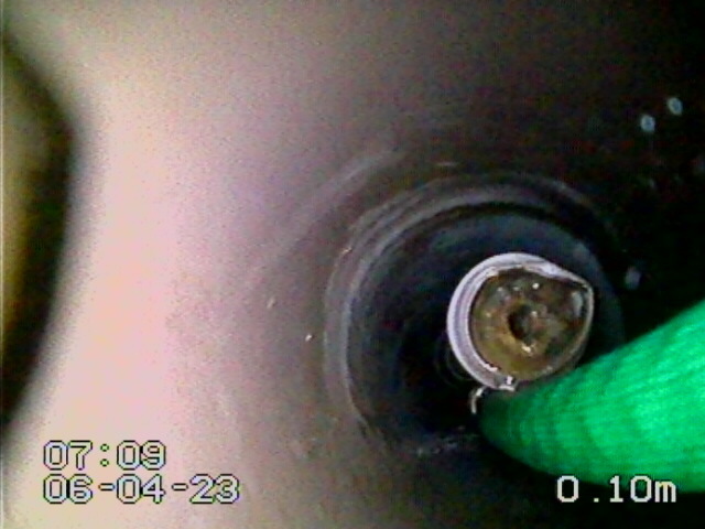大阪府吹田市の分譲マンションです。お部屋のキッチンの排水が流れずとの事。まずマンション担当の洗管業者様が洗管ホースが入らないので作業出来ない、2社目の業者様がワイヤーもカメラも入らないので作業出来ないとの流れで、当社に御相談が来ました。事前のヒアリングでも手掛かりがなく、情報が少なかったので通常の洗浄道具やワイヤー、複数のカメラ、特殊道具を揃えて出動です。結果は洗剤のキャップ。そこそこの大きさで細い配管にしっかり入り込んでしまった状態でした。原因がわかっても、複数の曲がりがある配管から取り出さないといけませんでしたが、簡易的に閉塞した油脂やゴミをワイヤーで除去して、取り出しは特殊な工具で引っ張り出しました。出来なければ配管の切断と大掛かりな工事になったかもしれませんので、お役に立てて良かったです。