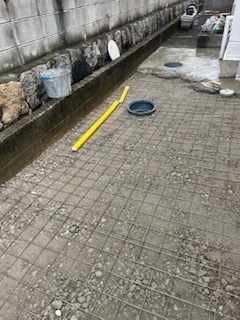 増改築を繰り返して行っておられ、その度配管の移設等もあり複雑な配管でした。老朽し破損も目立ってきたので排水管入替えを行い、自然にスムーズに排水されるようにルート変更も行いました。大雨での作業もあり、左官工事が大変でしたが無事に完了しました。